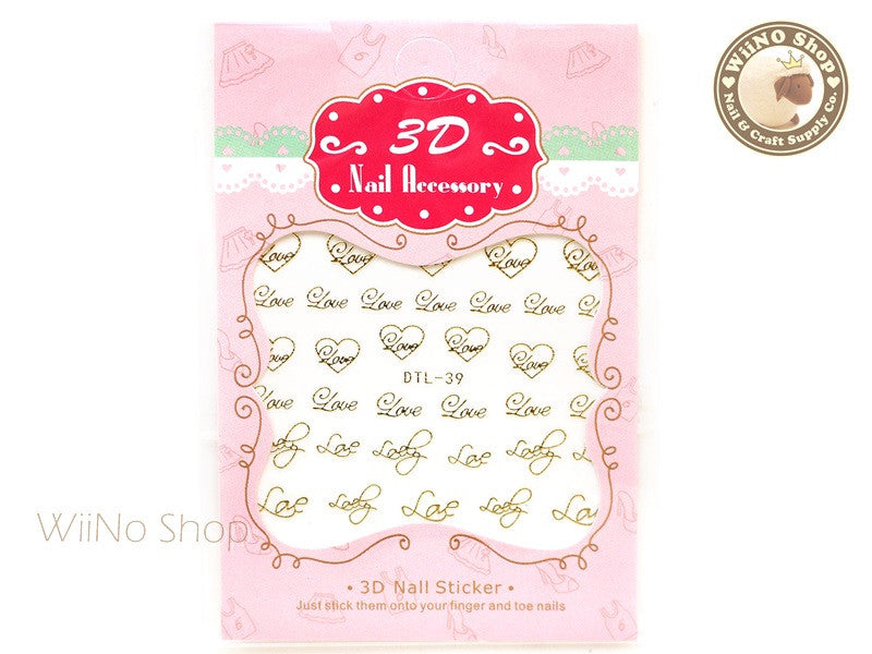 Gold Love Heart Nail Art Sticker - 1 pc (DTL-39G)