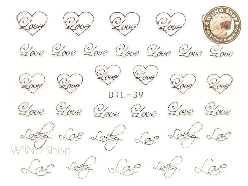 Silver Love Heart Nail Art Sticker - 1 pc (DTL-39S)