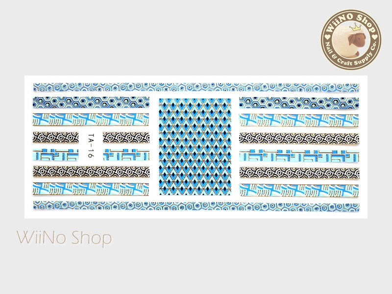 Blue Gold Geometric Pucci Style Adhesive Nail Sticker Nail Art - 1 pc (TA-16G)