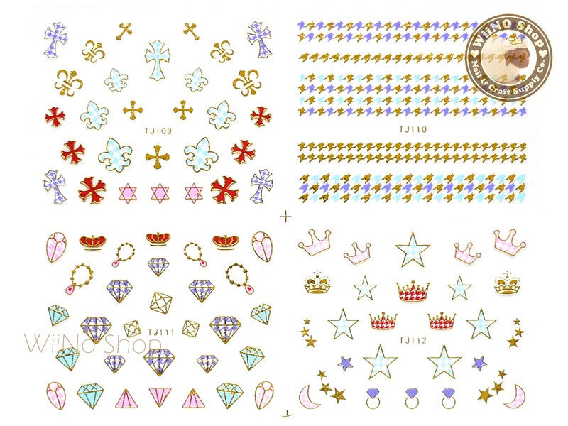 Gold Crown Diamond Houndstooth Pattern Adhesive Nail Sticker - 1 pc (TJ109-112G)
