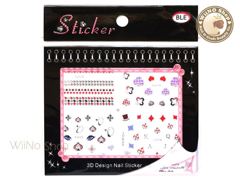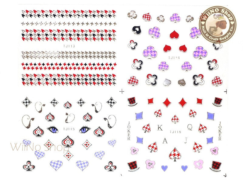 Silver Poker Houndstooth Pattern Adhesive Nail Sticker - 1 pc (TJ113-116S)