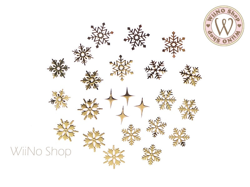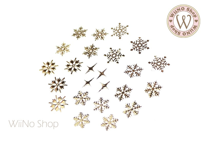 Gold Snowflake Mix Ultra Thin Nail Art Metal Decoration - 24 pcs