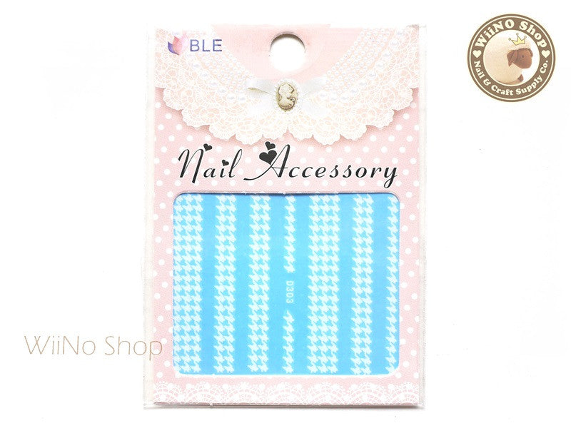 Houndstooth Pattern White Water Slide Nail Art Decals - 1pc (D303W)