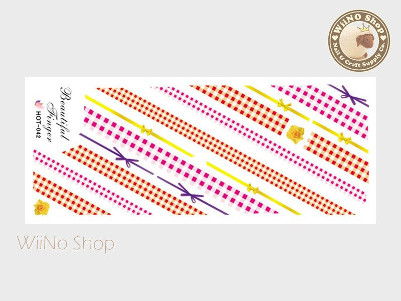 Pink Orange Gingham Pattern Water Slide Nail Art Decals - 1pc (HOT-042)