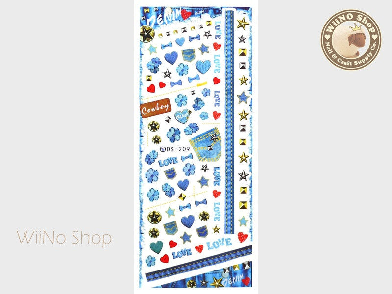 Denim Water Slide Nail Art Decals - 1 pc (DS-209)