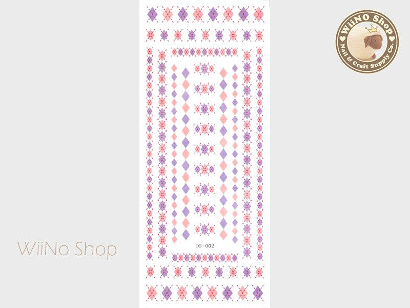 Pink Argyle Pattern Water Slide Nail Art Decals - 1 pc (DS-002)