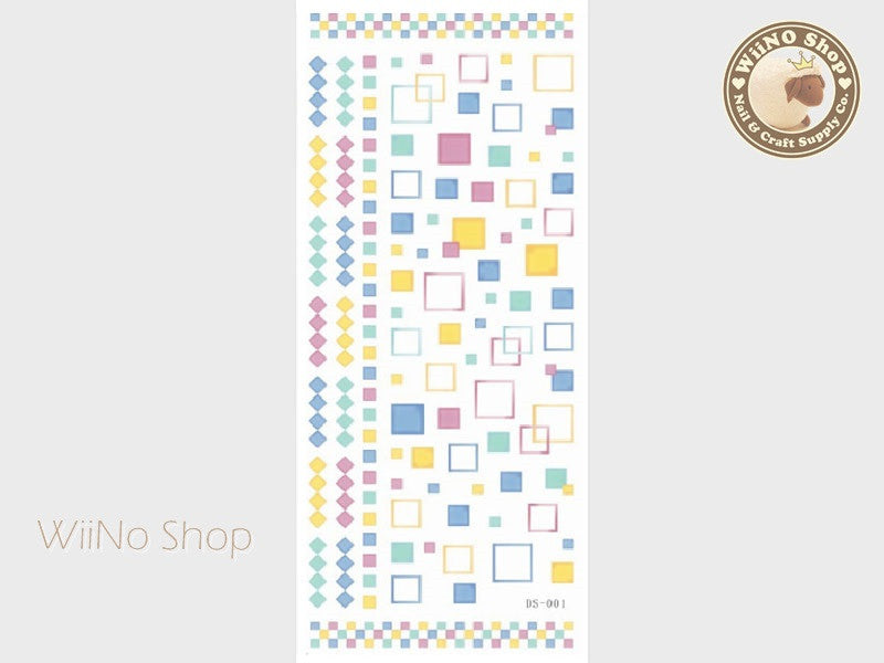 Square Geometry Pattern Water Slide Nail Art Decals - 1 pc (DS-001)