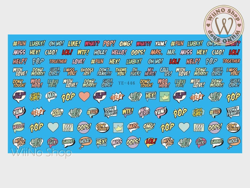 Pop Art Text Water Slide Nail Art Decals - 1pc (YE-446)