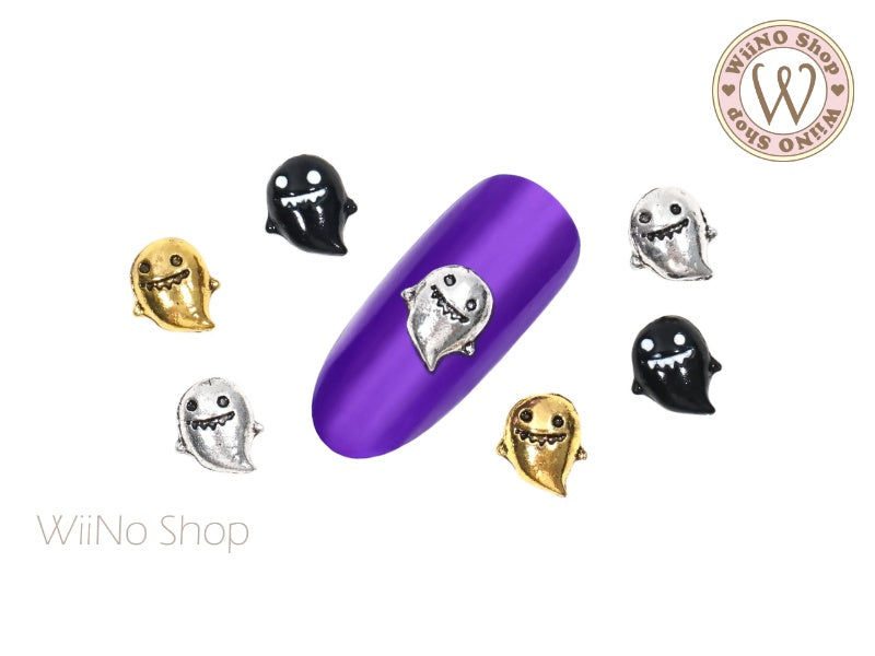 Ghost with Heart Crystal Nail Metal Charm - 2 pcs