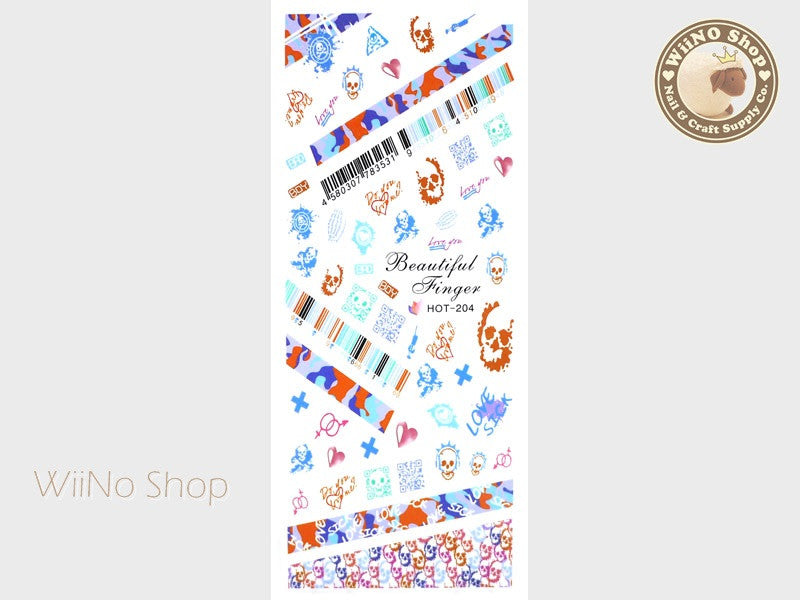 Purple Camouflage Skull Water Slide Nail Art Decals - 1pc (HOT-204)