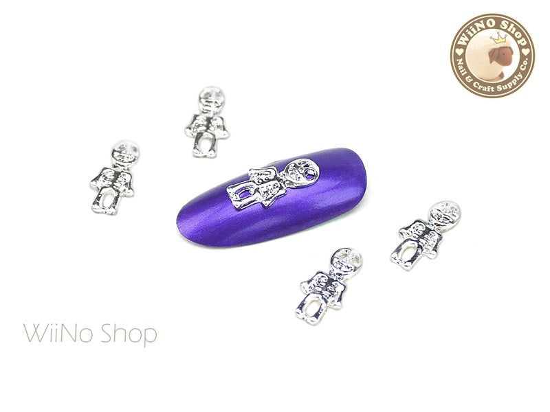 Silver Halloween Skeleton Nail Metal Charm - 2 pcs