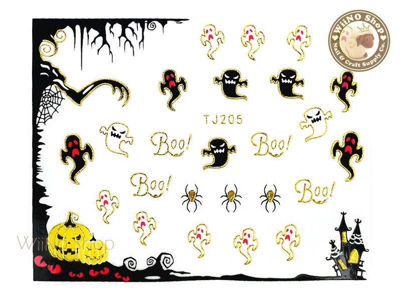 TJ205 Gold Halloween Ghost Adhesive Nail Art Sticker - 1 pc