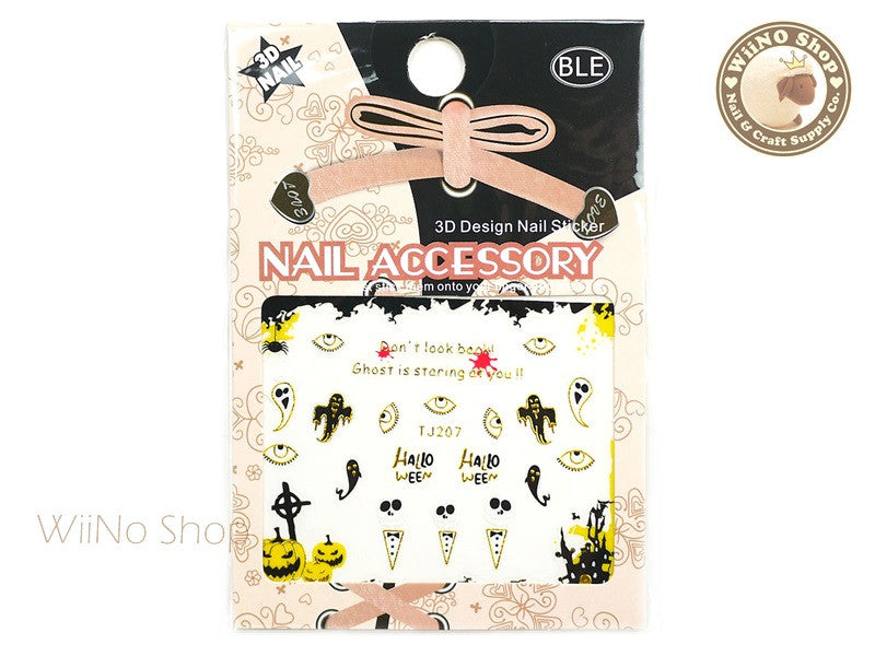 TJ207 Gold Halloween Ghost Adhesive Nail Art Sticker - 1 pc