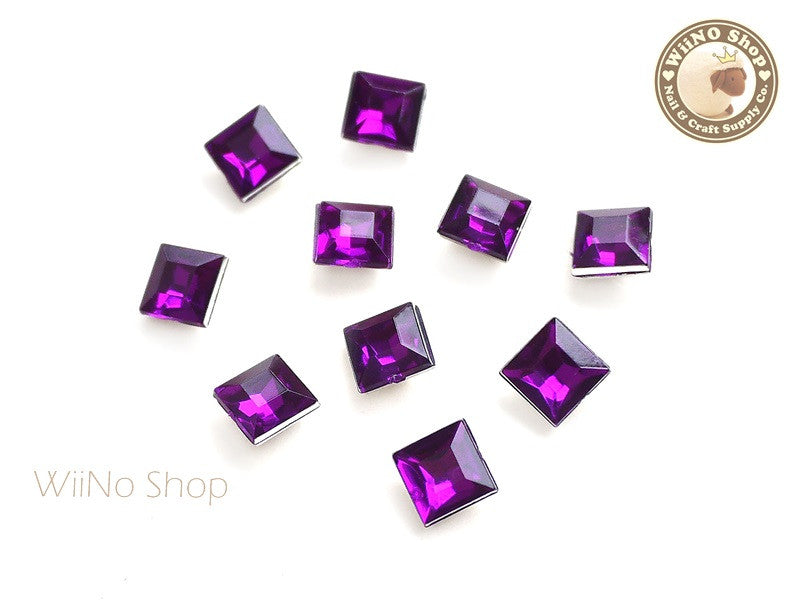 8mm Purple Violet Square 3D Point Back Acrylic Rhinestone - 15 pcs