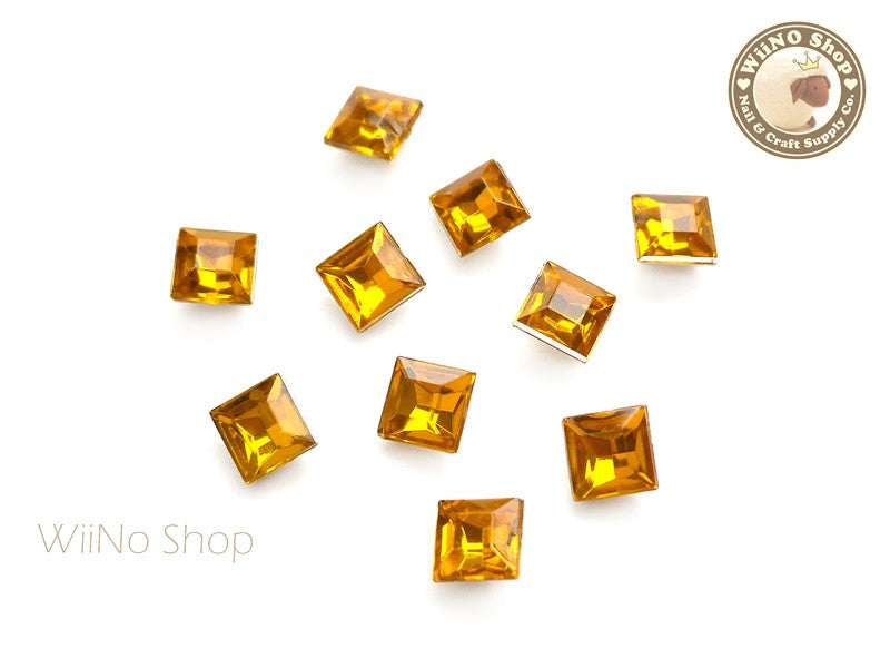 8mm Yellow Topaz Square 3D Point Back Acrylic Rhinestone - 15 pcs