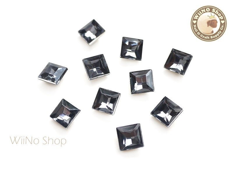 8mm Black Diamond Square 3D Point Back Acrylic Rhinestone - 15 pcs