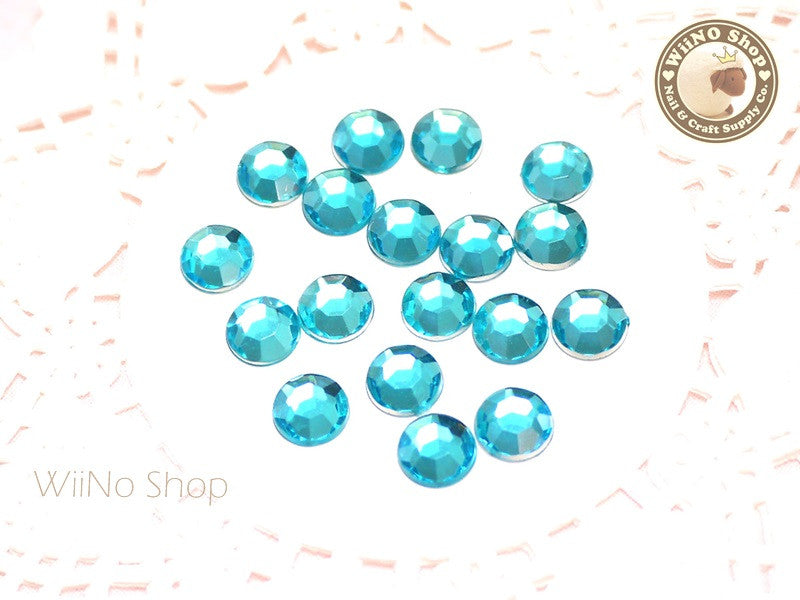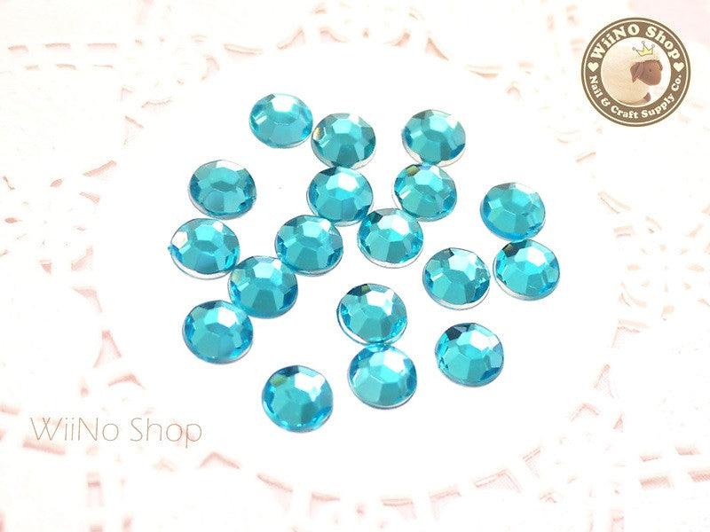 8mm Blue Aquamarine Round Flatback Acrylic Rhinestone - 50 pcs