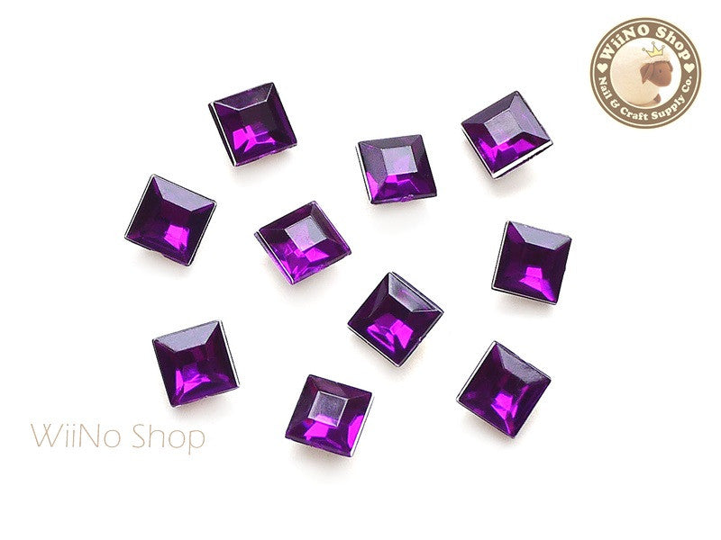8mm Purple Violet Square 3D Point Back Acrylic Rhinestone - 15 pcs