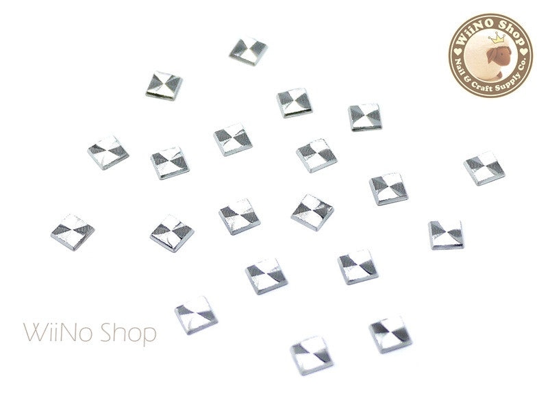 4mm Silver Square Concentric Pattern Metal Studs - 10 pcs