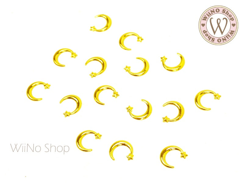 Gold Moon & Star Metal Studs - 10 pcs (5mm/8mm)