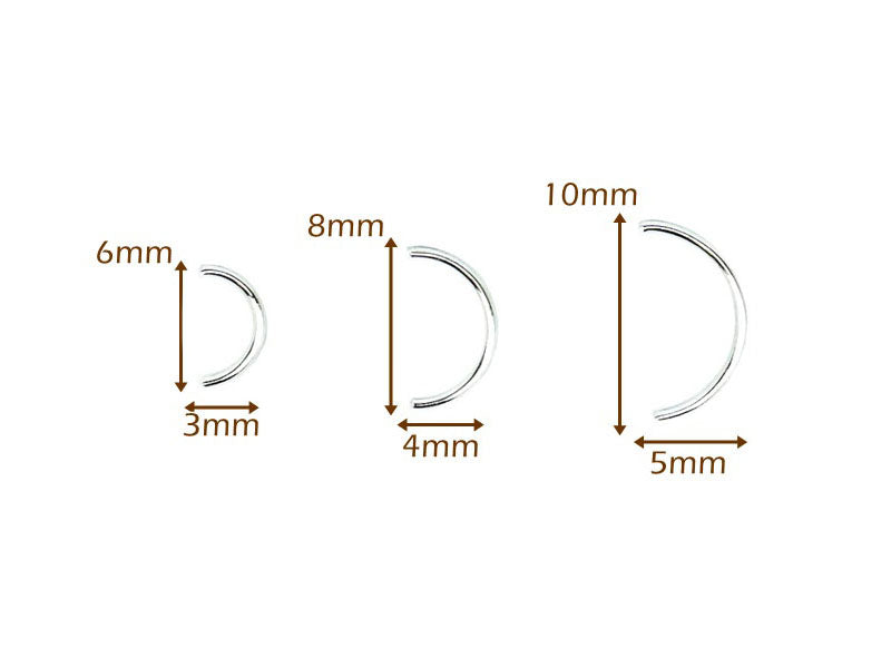Silver Curved Tube Metal Studs - 50 pcs (0.5x6mm/8mm/10mm)