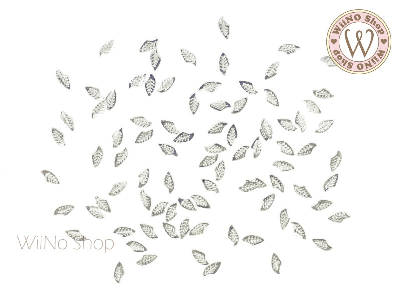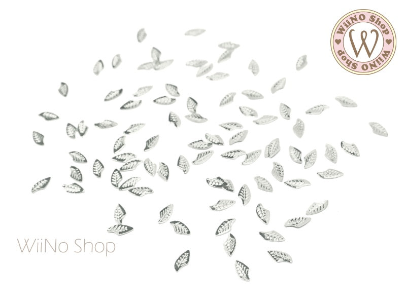 Silver Falcate Leaf Metal Studs - 10 pcs