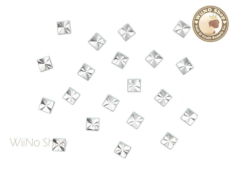 4mm Silver Square Concentric Pattern Metal Studs - 10 pcs