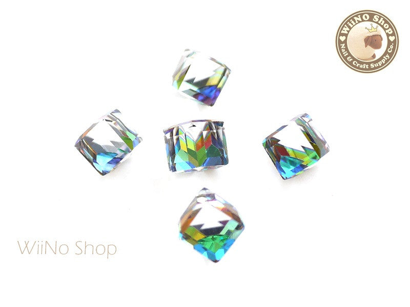 10mm AB Rainbow 3D Square Cube Crystal Rhinestone - 2 pcs