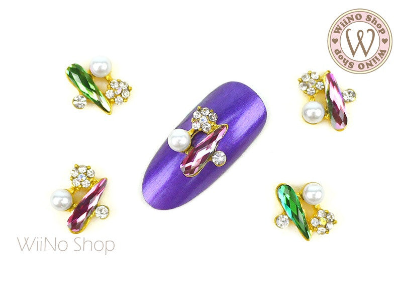 Volcano Drop Crystal Cluster Nail Metal Charm - 2 pcs
