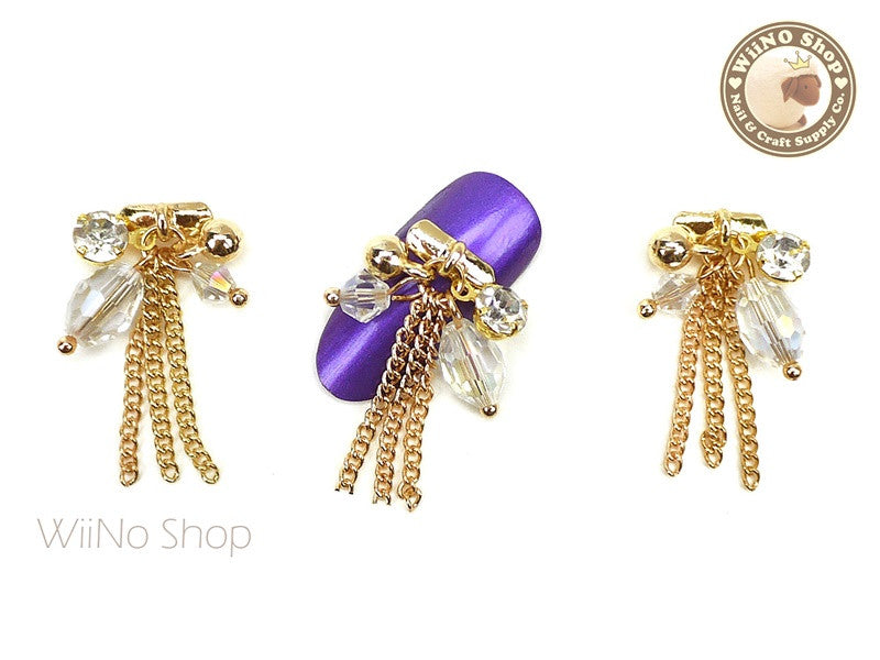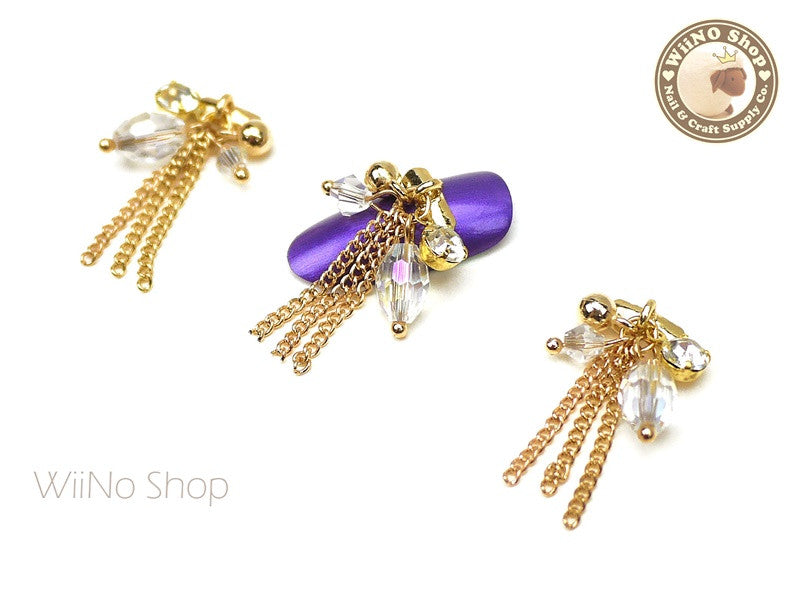 Clear Jewel & Chain Nail Art Dangle Charm - 2 pcs