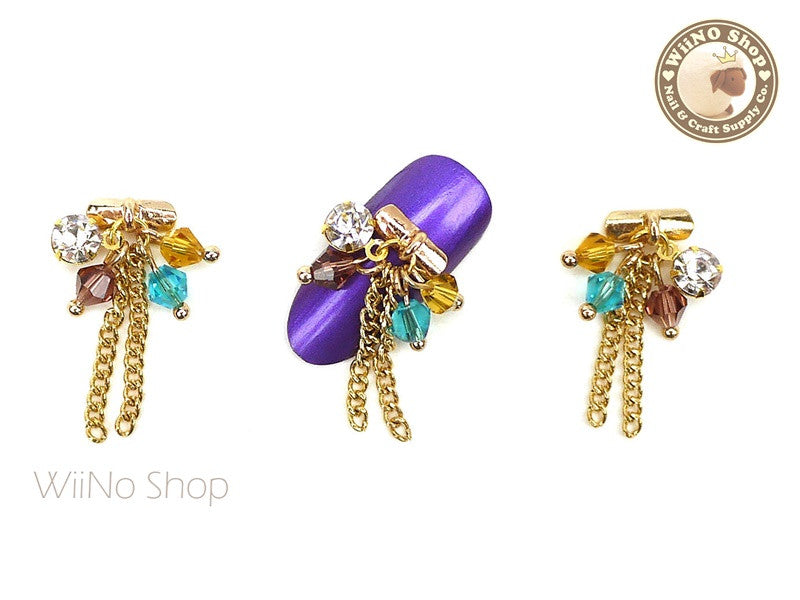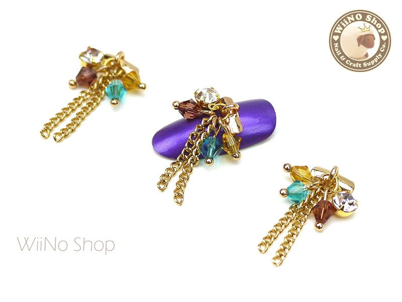 Color Jewel & Chain Nail Art Dangle Charm - 2 pcs
