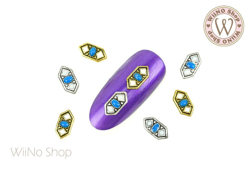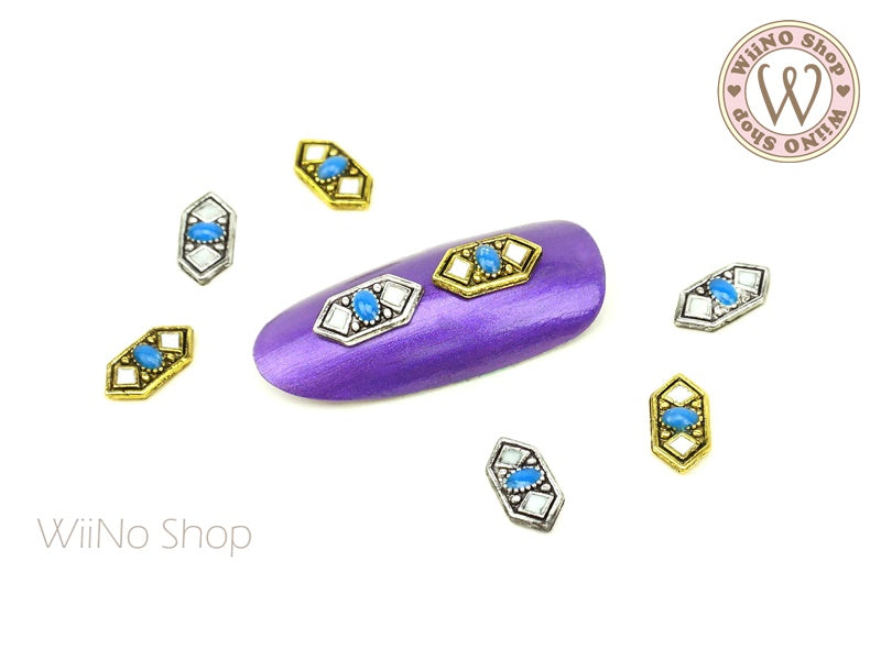 Long Hexagon Enamel Pattern Nail Metal Charm - 2 pcs