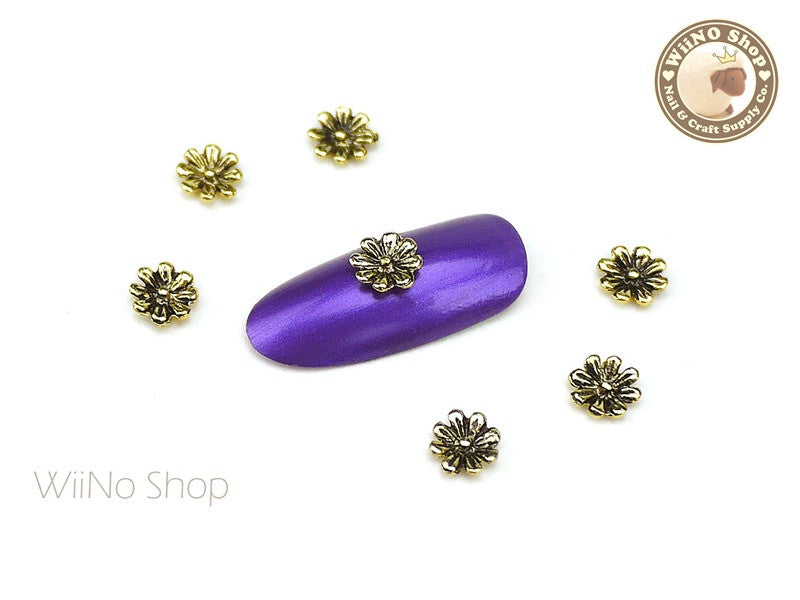 Antique Gold Daisy Nail Metal Charm - 2 pcs