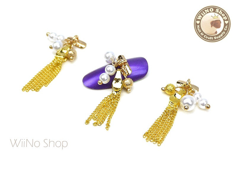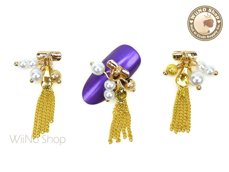 Pearl & Chain Nail Art Dangle Charm - 2 pcs