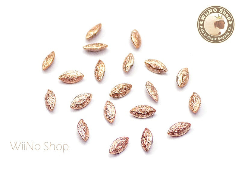 6 x 3mm Rose Gold Textured Marquise 3D Point Back Rhinestone - 10 pcs