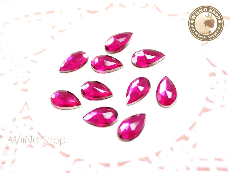 12 x 7mm Fuchsia Hot Pink Drop Flat Back Acrylic Rhinestone - 15 pcs