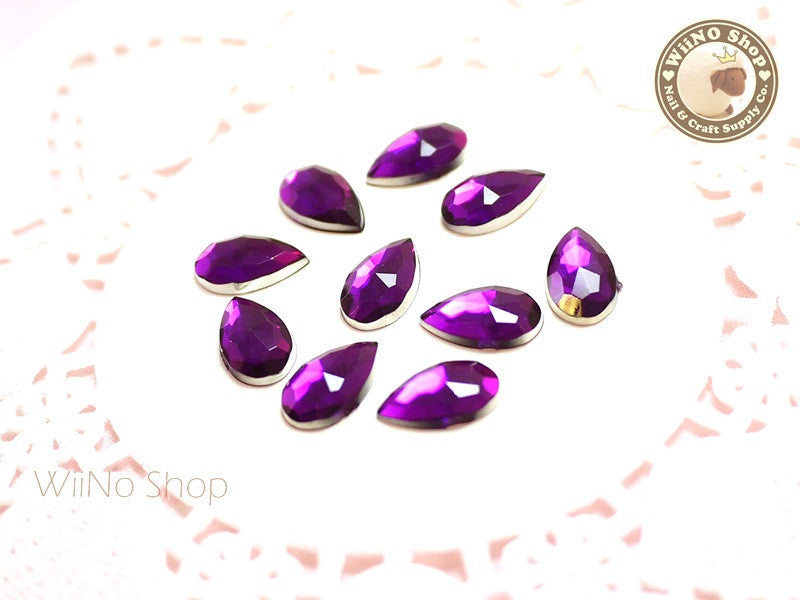 12 x 7mm Purple Violet Drop Flat Back Acrylic Rhinestone - 15 pcs