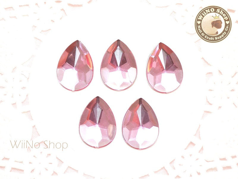 18 x 13mm Pink Light Rose Pear Drop Flat Back Acrylic Rhinestone - 5 pcs