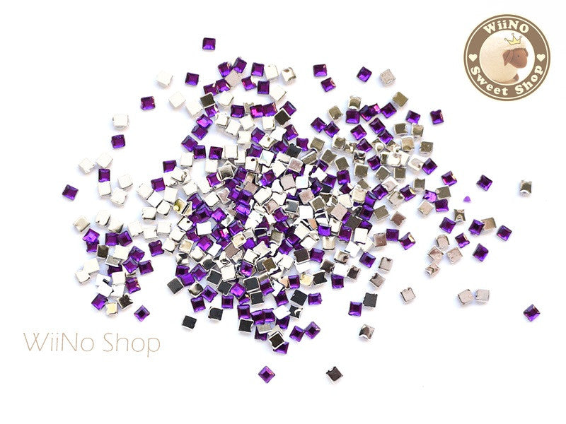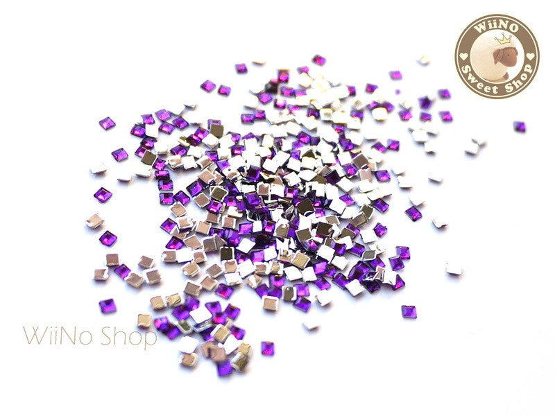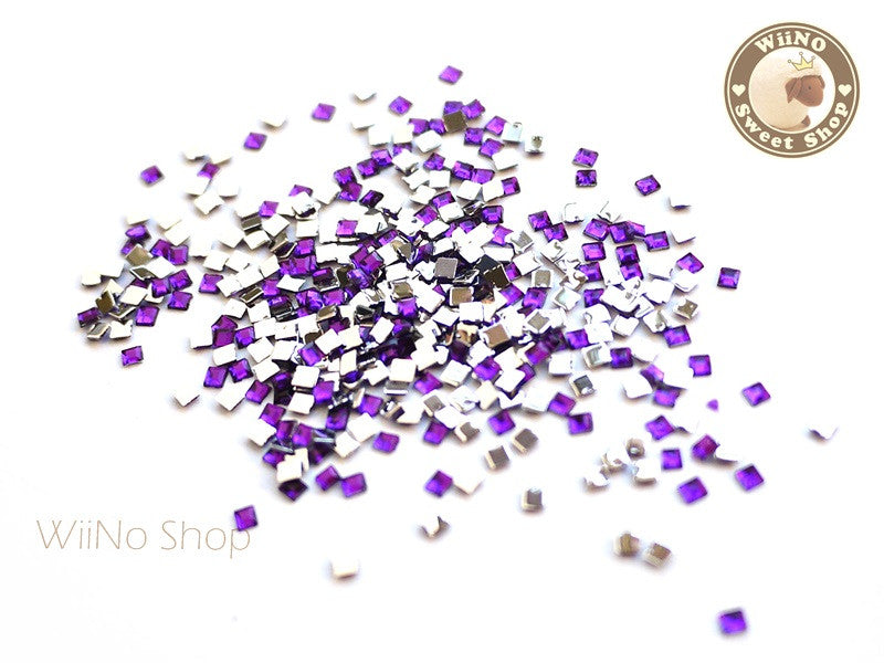 2mm Purple Violet Square Flatback Acrylic Rhinestone Nail Art - 100 pcs