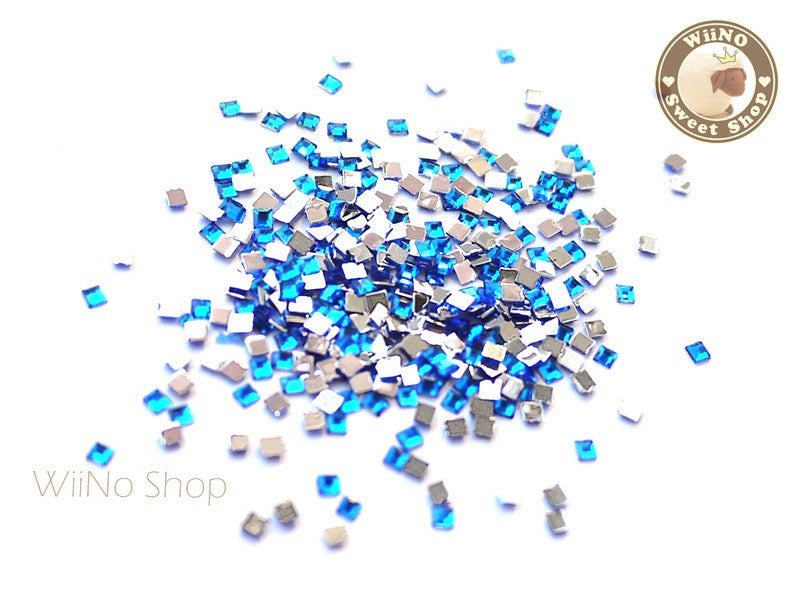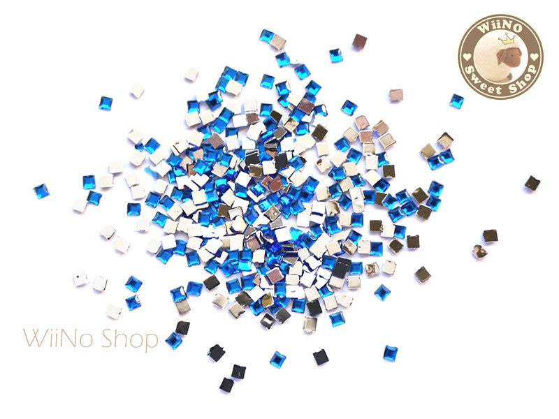 2mm Royal Blue Cobalt Square Flatback Acrylic Rhinestone Nail Art - 100 pcs