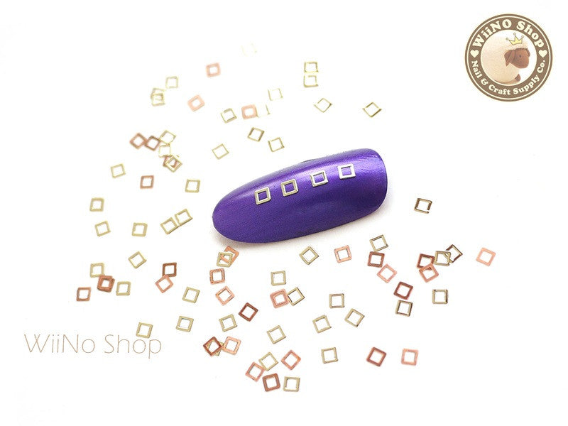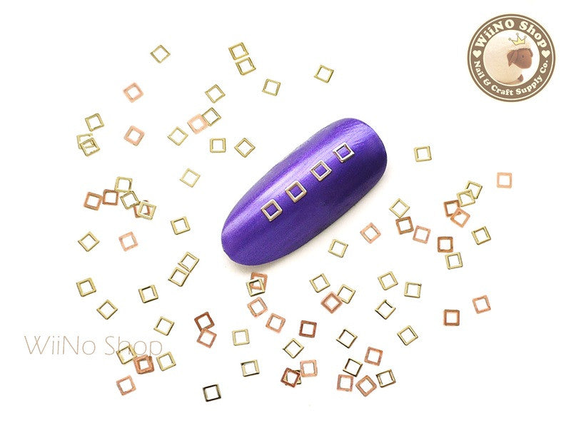 2mm Gold Square Ultra Thin Nail Art Metal Decoration - 25 pcs