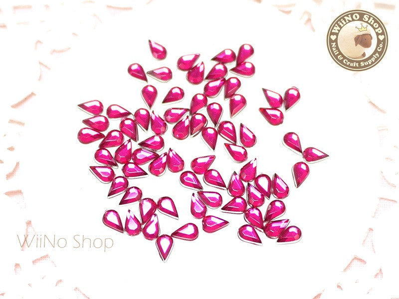 5 x 3mm Fuchsia Hot Pink Drop Flat Back Acrylic Rhinestone Nail Art - 100 pcs