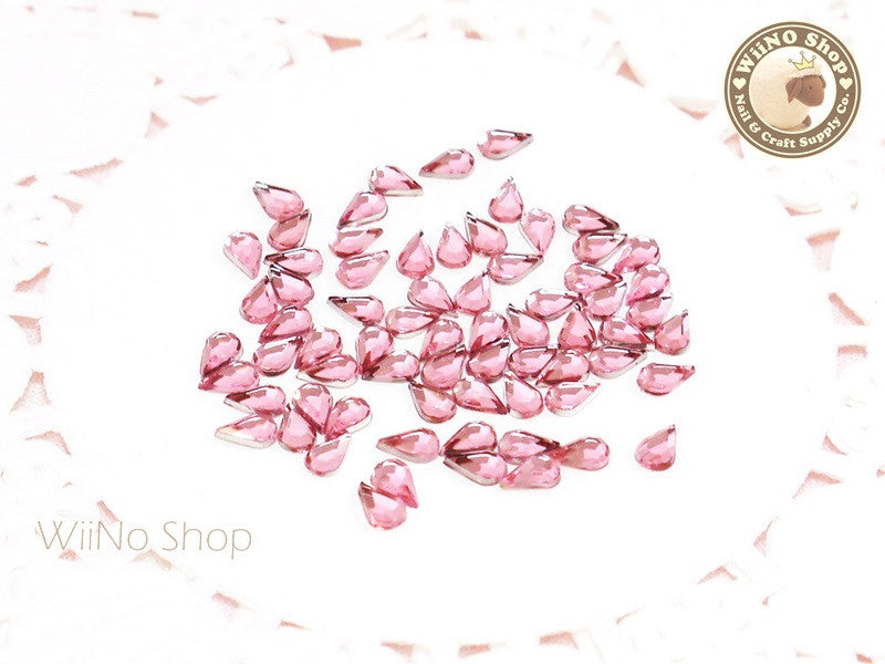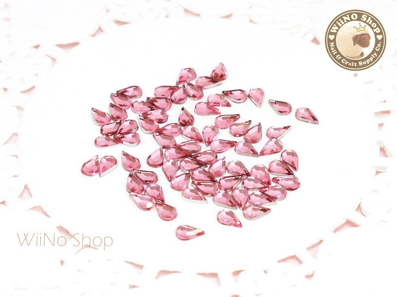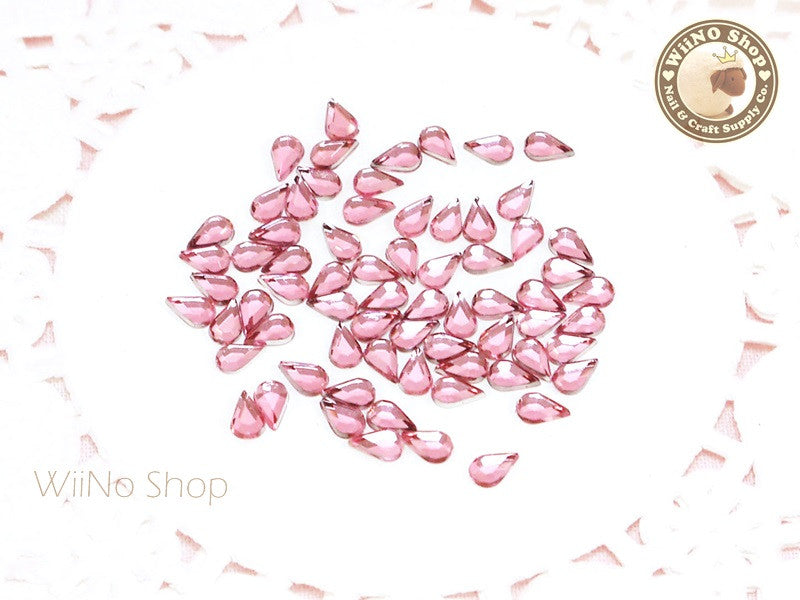 5 x 3mm Pink Light Rose Drop Flat Back Acrylic Rhinestone Nail Art - 100 pcs