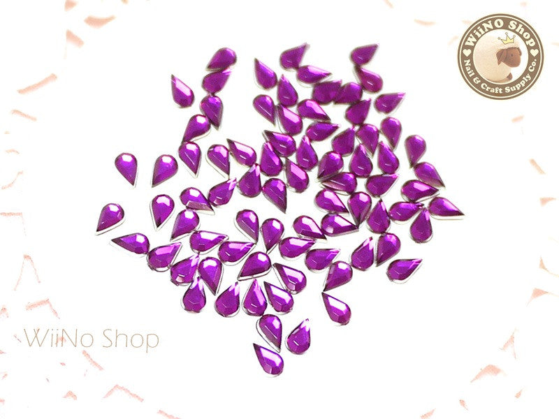 5 x 3mm Purple Violet Drop Flat Back Acrylic Rhinestone Nail Art - 100 pcs