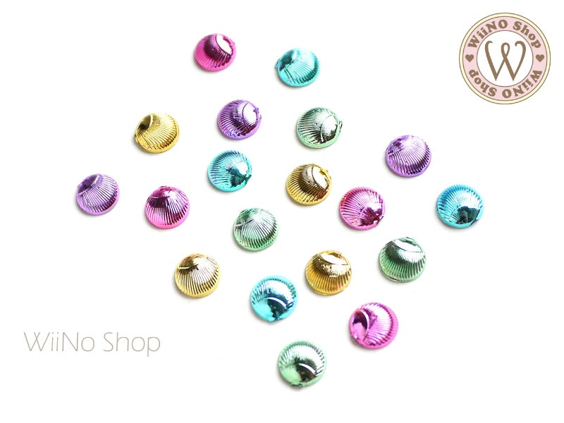 8mm Metallic Round Seashell Mix Colors Cabochon Rhinestone - 10 pcs
