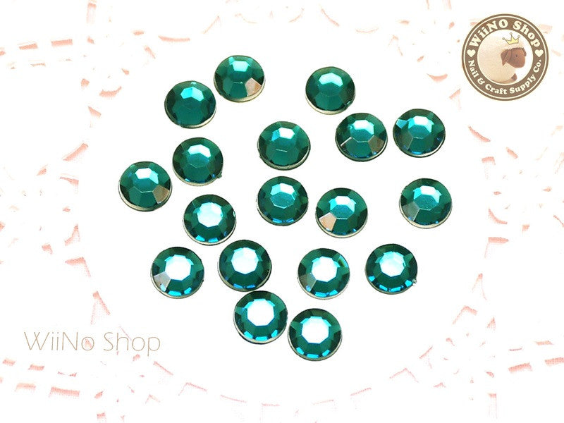 8mm Peacock Green Round Flatback Acrylic Rhinestone - 50 pcs