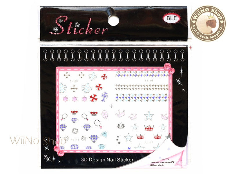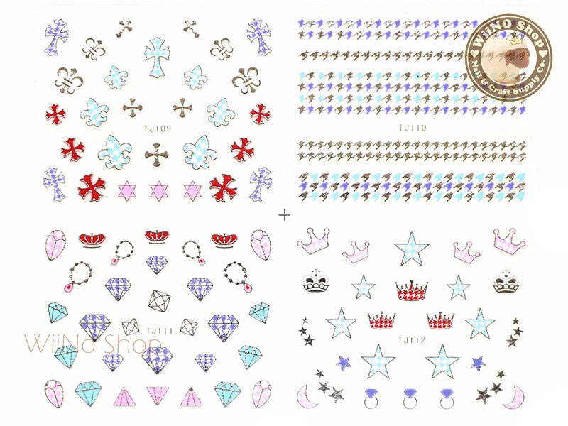 Silver Crown Diamond Houndstooth Pattern Adhesive Nail Sticker - 1 pc (TJ109-112S)