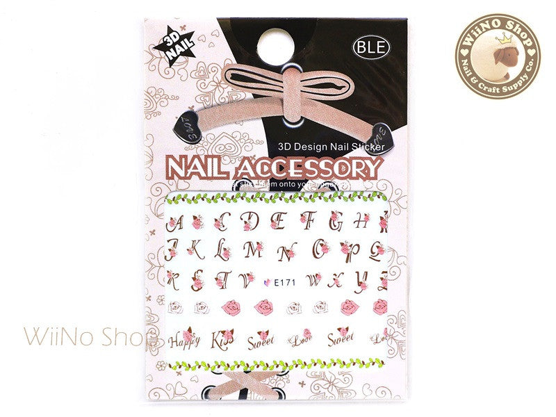 E171 Rose Letter Fonts Nail Sticker Nail Art - 1 pc