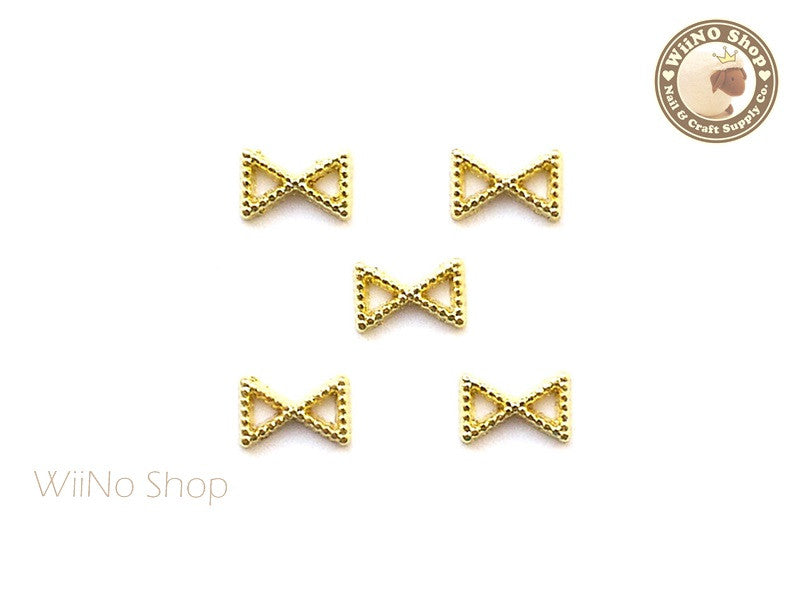 Gold Bow Frame Nail Art Decoration - 5 pcs
