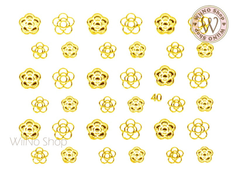 Gold Camellia Adhesive Nail Art Sticker - 1 pc (J40)